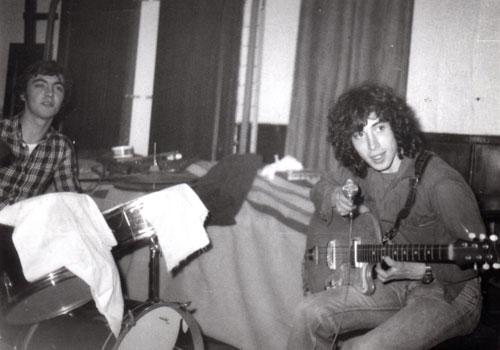 Otoño de 1972 - Xavi Dalmau, Josep Llobera, Dome Campomanes y Manolo Martín intentan de nuevo ensayar en los Salesianos con los instrumentos que han logrado reunir.