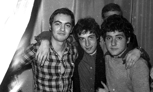 Josep, Xavi y Ñaqui antes de actuar en el Festival del Colegio Jesus María de la Guineueta. Barcelona 1975.