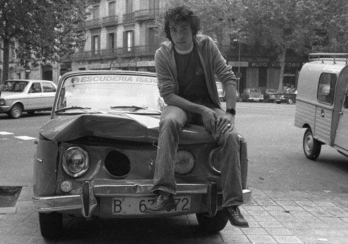 Xavi después de estrellar su coche como era habitual. Barcelona 1975.